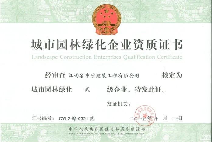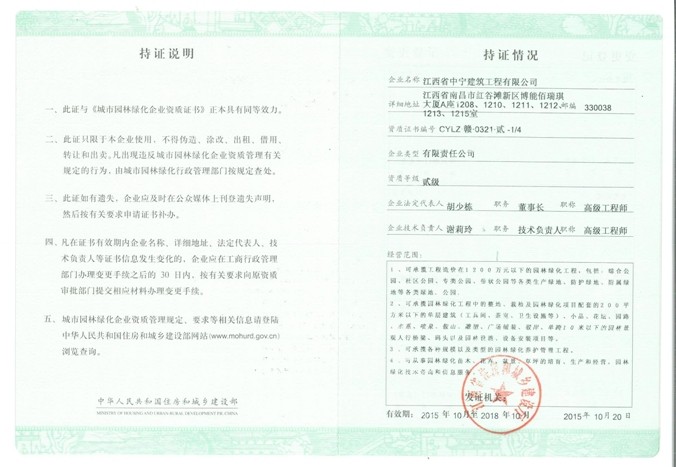 熱烈慶祝我司園林綠化資質榮升二級